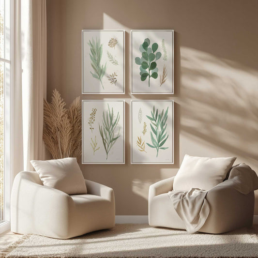 Earthy Greens in Bloom, Set of 4 Canvas Prints