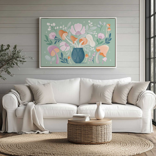 Whimsical Bouquet with Fungi and Blooms Canvas Print
