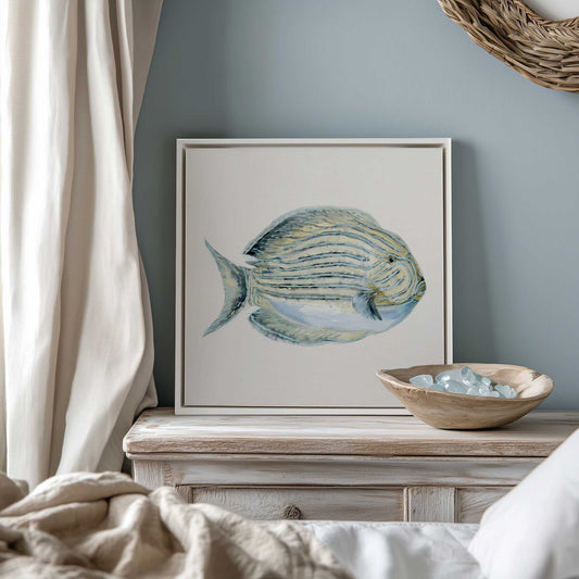 Charming Striped Tropical Fish Watercolor Wall Art Canvas Print