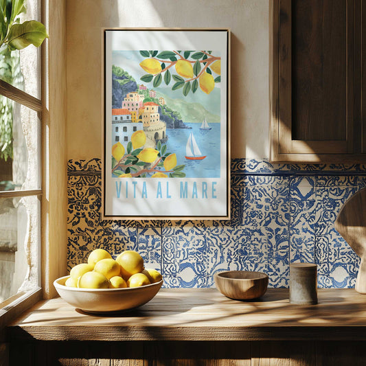 Sunny Lemon Tree and Mediterranean Coastline Canvas Print