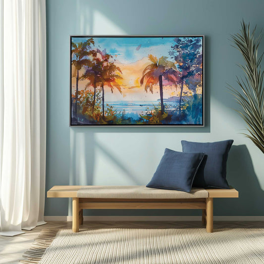 Tropical Coastline with Emerald Palms from Above Canvas Print