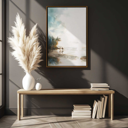 Surfers at Golden Shoreline Canvas Print