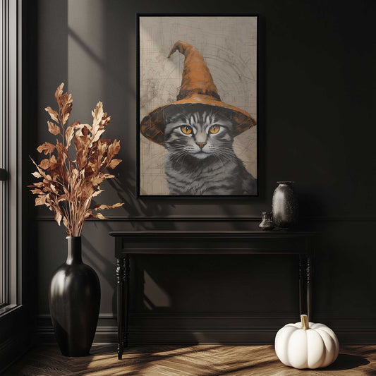 Cat in a Witch Hat Canvas Print