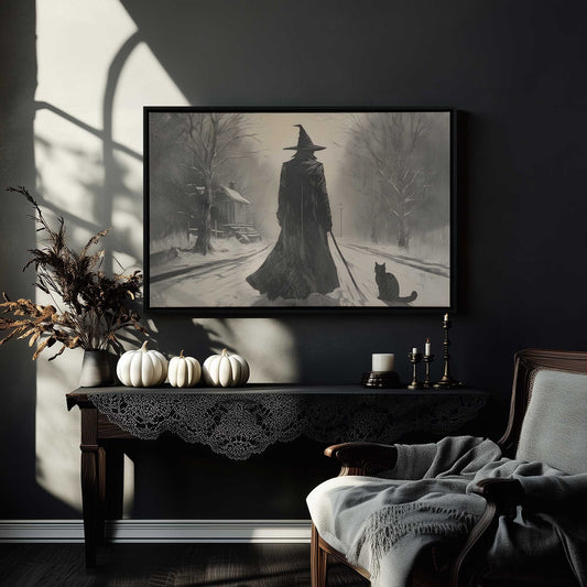 Winter Witch and Cat Canvas Print