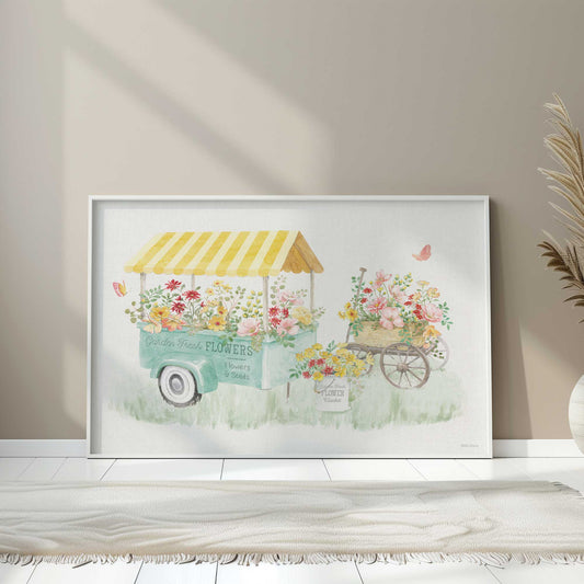 Vintage Flower Cart with Butterflies Paper Print