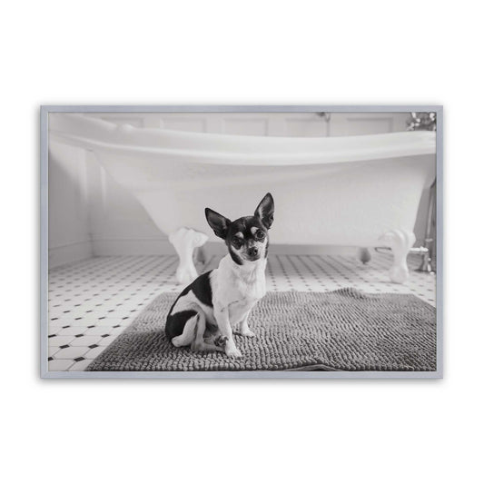 Curious Chihuahua in a Vintage Tile Bathroom Paper Print