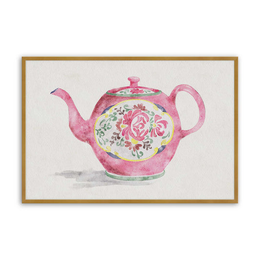 Bold Pink Floral Teapot with Playful Folk Art Charm Paper Print
