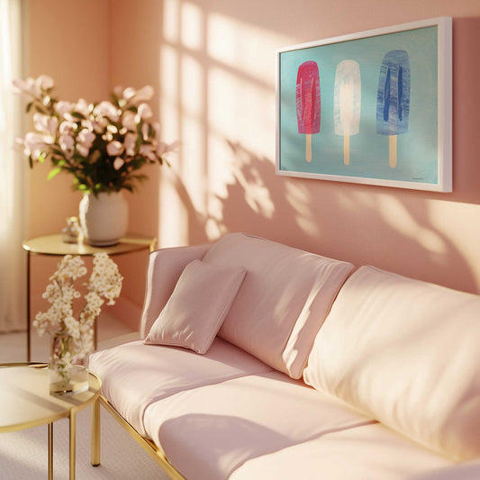 Red White and Blue Popsicles on Aqua Background Paper Print