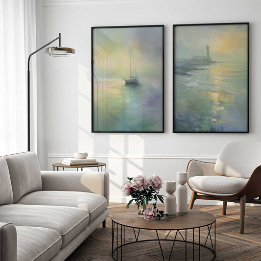 Foggy Morning Sail Art Print, Set of 2