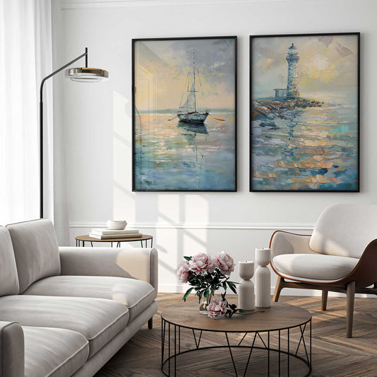 Ocean Sail at Dusk Art Print, Set of 2