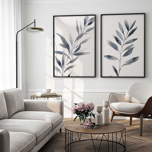 Soft Blue Leaves Art Print, Set of 2