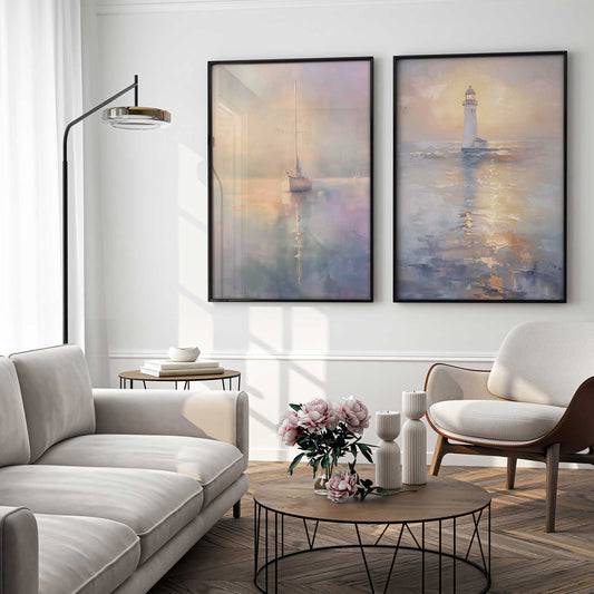 Foggy Sunset Sail Art Print, Set of 2