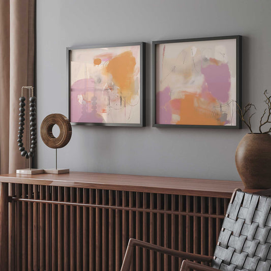 Pink and Orange Pulse Art Print, Set of 2
