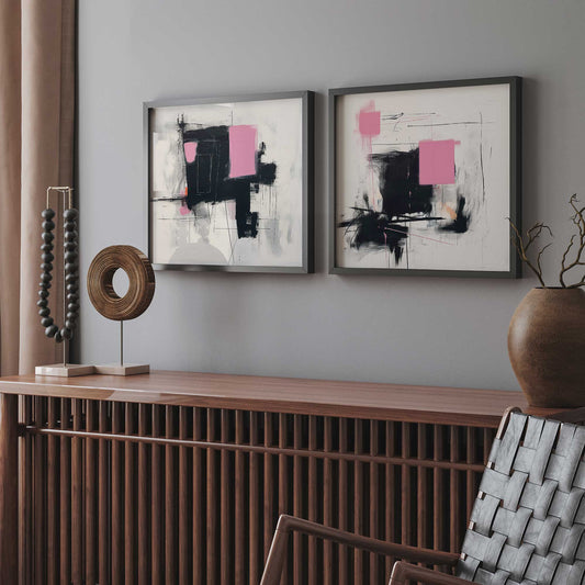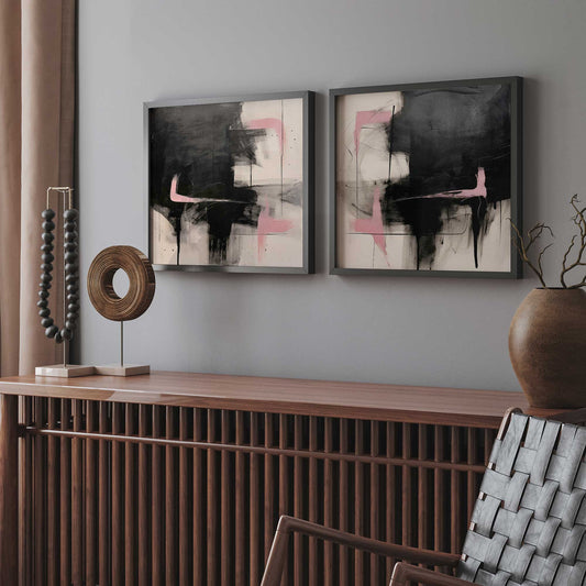 Black and Pink Echoes Art Print, Set of 2