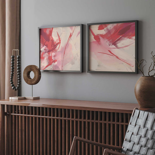 Bold Pink and Red Abstract Art Print, Set of 2