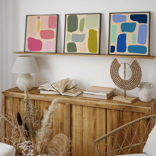 Colorful Abstract Pop Blocks Art Print, Set of 3