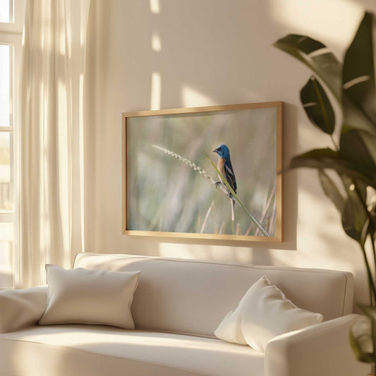 Rustic Barn with White Florals on Deep Blue Background Paper Print