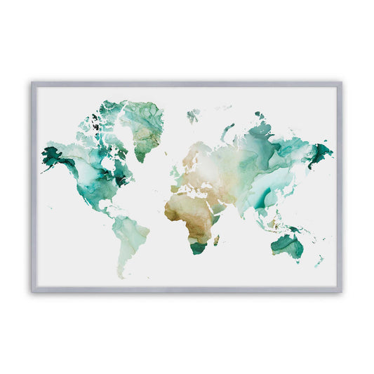Earthy Toned Watercolor World Map with Organic Vibe Paper Print