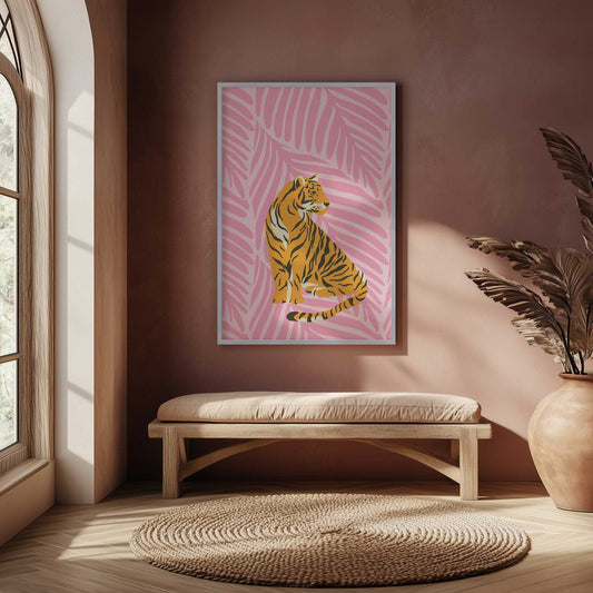 Ballerina Raccoon in Tutu and Tiara on Blue Background Art Print