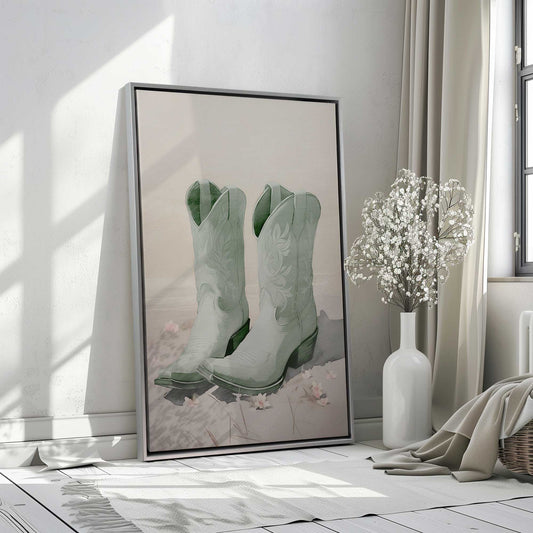 Mint Cowboy Boots Canvas Print
