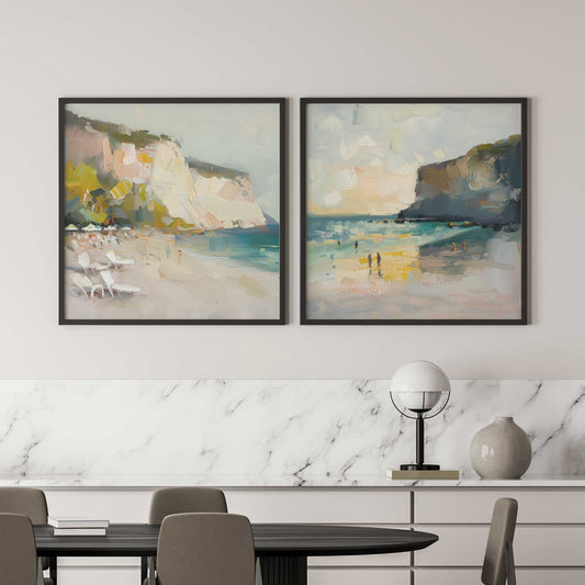 Calm Cliffside Coast Pair Art Print, Set of 2
