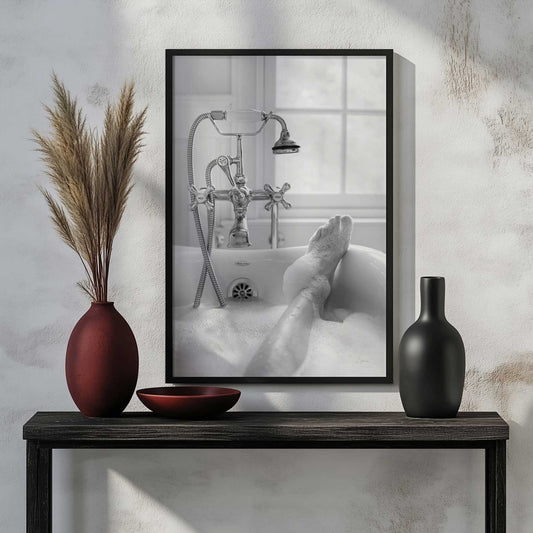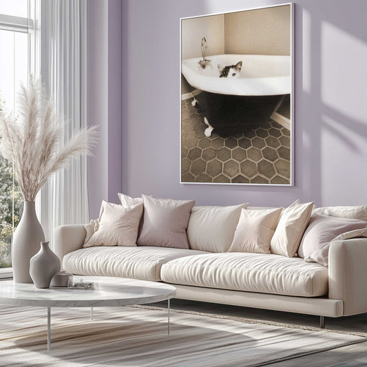 Curious Chihuahua in a Vintage Tile Bathroom Paper Print