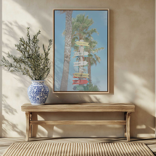 Colorful Destination Sign with Palm Trees Canvas Print