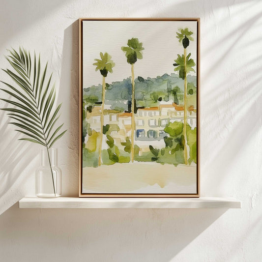 Chill Palm Tree Cityscape with Soft Watercolor Vibes III Canvas Print