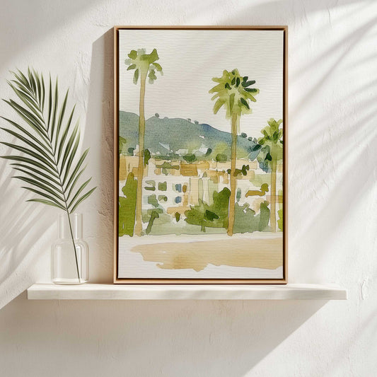 Chill Palm Tree Cityscape with Soft Watercolor Vibes II Canvas Print