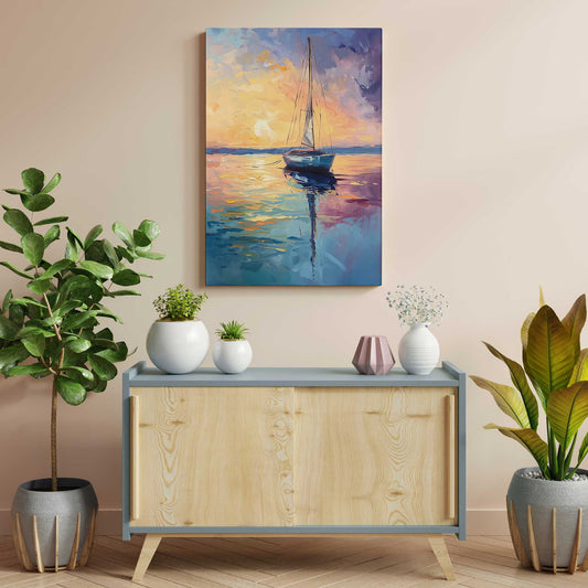 Bright Sunset Sailboat Canvas Print