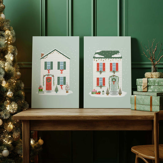 Cozy Christmas Cottage, Set of 2 Canvas Prints