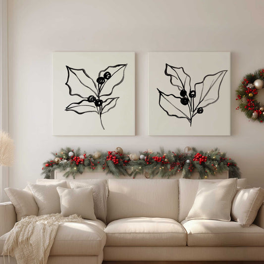 Monochrome Mistletoe, Set of 2 Canvas Prints