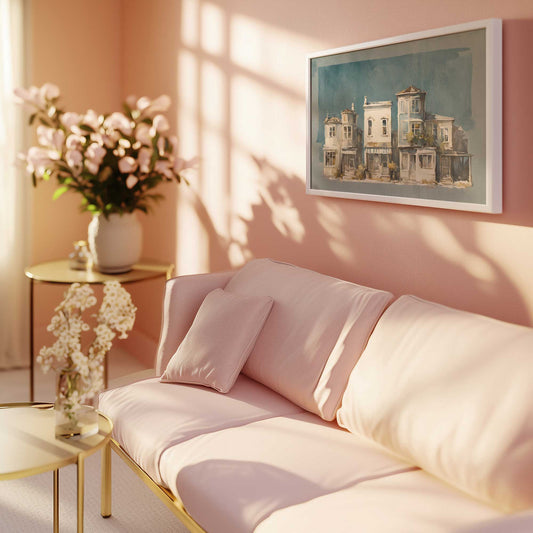 Charming Vintage Row Homes Against a Dreamy Teal Sky Art Print