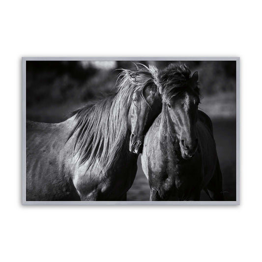 Graceful Bond Between Wild Horses in Black and White Paper Print
