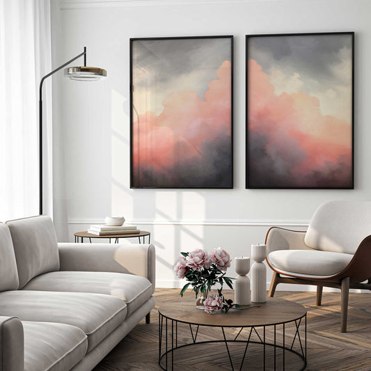 Moody Sunset Clouds Art Print, Set of 2