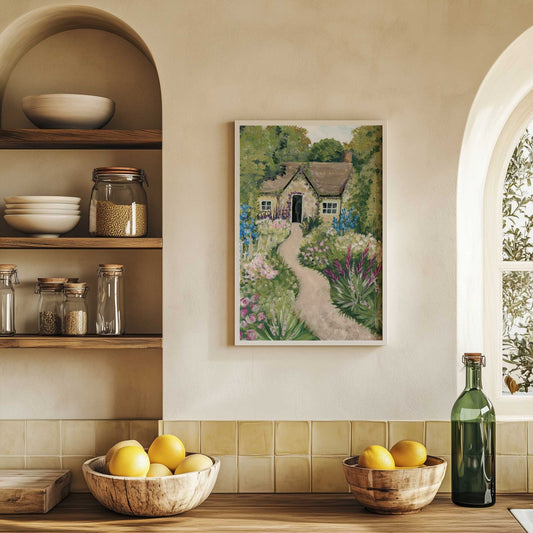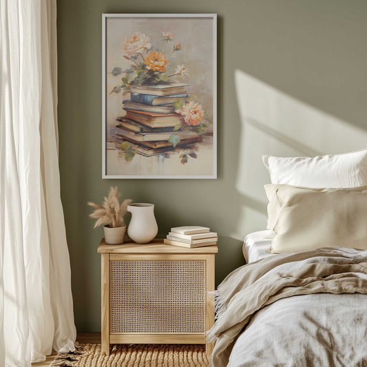 Vintage Books and Soft Florals in Pastel Tones II Art Print