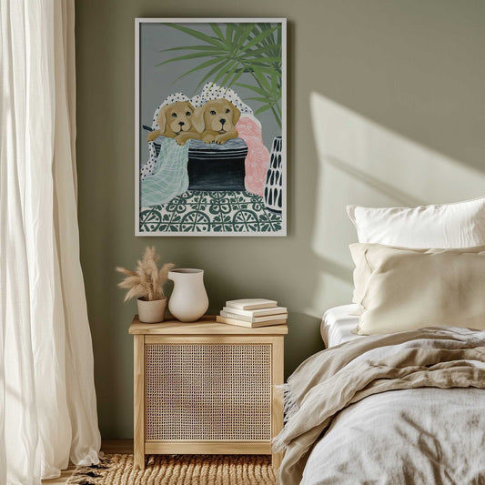 Colorful Wildflowers in Watercolor on Warm Beige Art Print