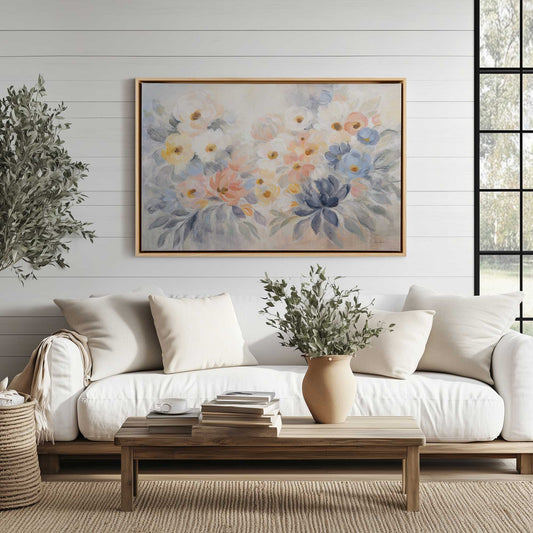 Vintage Books and Soft Florals in Pastel Tones I Art Print