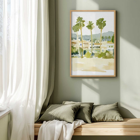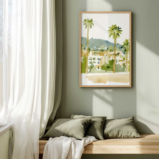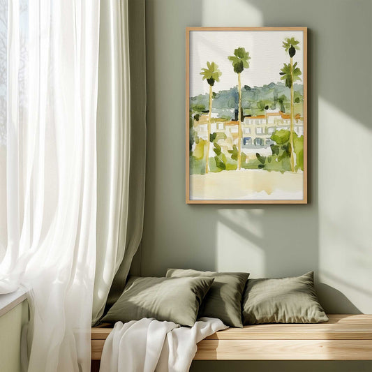 Chill Palm Tree Cityscape with Soft Watercolor Vibes I Print
