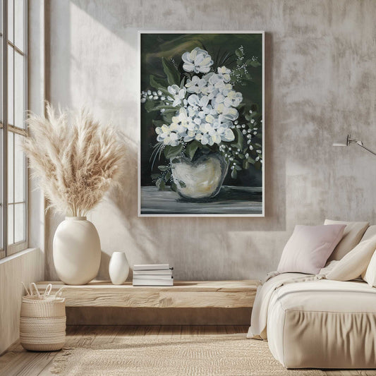 White Blossoms in Moody Light Art Print