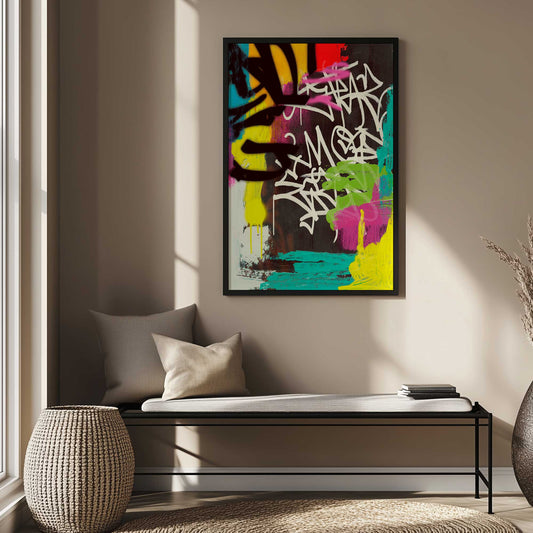 Neon Scribbles and Spray I Art Print