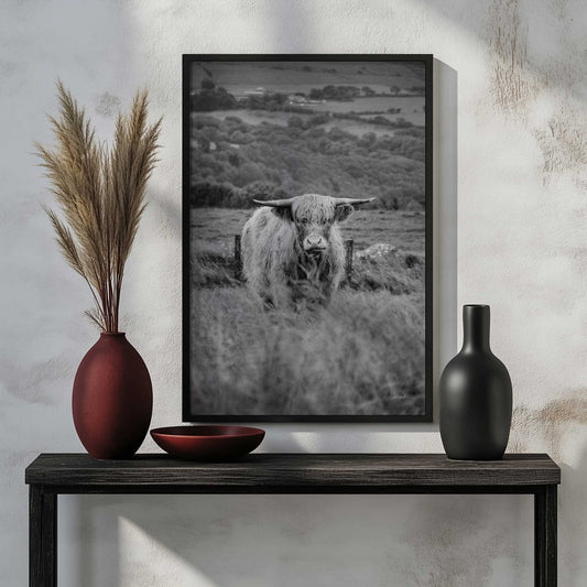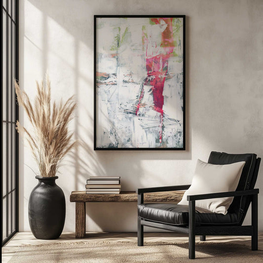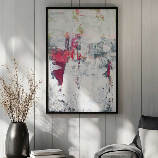 Couple Walking in Rain with Red Umbrella and City Skyline I Art Print
