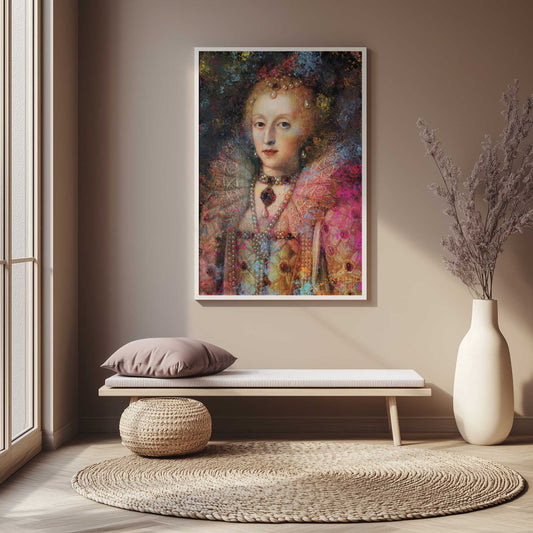 Couple Walking in Rain with Red Umbrella and City Skyline II Art Print