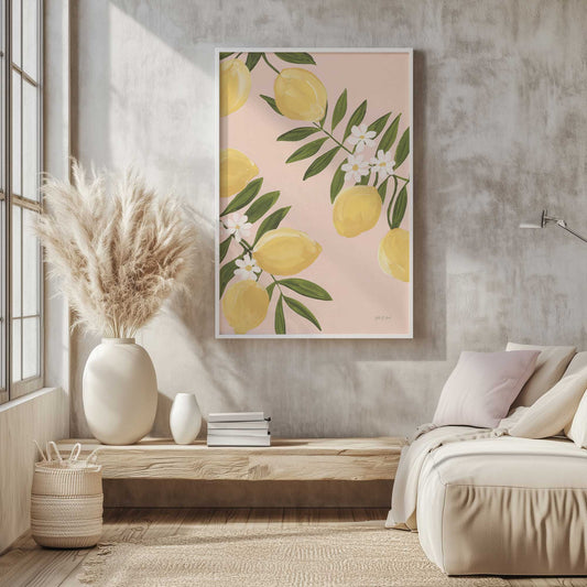 Lemons and Blossoms on Blush Art Print