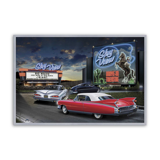 Retro Drive-In Vibes with Neon Nights and Classic Cars Paper Print