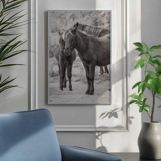 Pair of Horses in Black and White Art Print