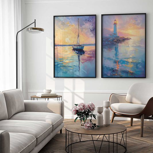 Bright Sunset Sail Art Print, Set of 2