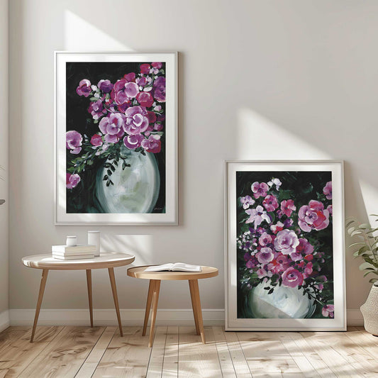 Purple Bouquets in a Vase Art Print, Set of 2