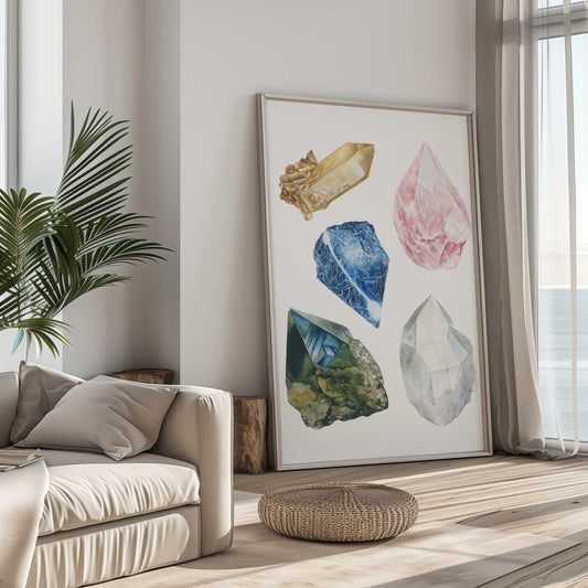Set of Five Watercolor Crystals in Jewel Tones I Art Print