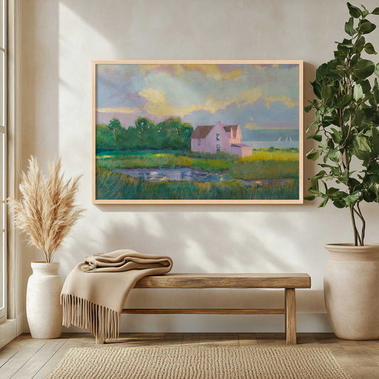 Pink Cottage by the Bay Art Print